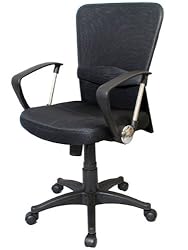 This is an absolutely gorgeous, high-back, mesh office chair. It's modern and stylish, and is designed for maximum comfort. This chair has a complete range of motion. It swivels in a complete 360 degree circle, and it is equipped with a pneumatic gas lift, so you can raise and lower the chair with a simple pull of a lever. It tilts back, but also has a tilt lock, so you can keep the chair upright if you like. It also has a tilt tension control, so you can make the tilt as stiff or flexible as you like. In addition to a great range of adjustment, this mesh office chair is ergonomically crafted to keep you comfortable for hours of long sitting. This unique chair has an adjustable lumbar support strap that can be moved up or down the back of the chair so that you can position it for perfect comfort. The lumbar support strap has a zipper so you can remove the stuffing or even add more if you like. The lumbar support strap can be removed entirely as well, if you wish. There are few, if any, chairs at this price range that offer a dynamic lumbar support strap like this one. In addition, this chair features a contoured padded seat. Seating is constructed entirely of a black mesh fabric that is very breathable. The armrests are textured to be ultra comfortable and are perfectly positioned for resting your arms while typing at a computer. Plus there are reflective accents on the chair arms that make the chair look fabulous in any room. This chair features a heavy-duty "5 star" base with rolling casters. The heavy-duty double wheels are extra sturdy, and hooded for your safety. The seat size is 19 inches at its widest point (between the arm rests) and the depth of the seat is 19 inches. The back is 21 inches at its widest point and 21 inches high. The seat adjusts from approximately 17.5 inches to 21 inches high. Some assembly is required.
