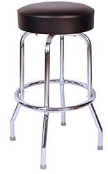 This bar stool is a dark black commercial swivel bar stool upholstered in black Floridian upholstery Vinyl.The bar stool frame features a commercial nickel chrome plated finish.This bar stool is manufactured to last and look great in your restaurant, , hotel, bar, diner, or home.We can handle large orders very quickly.Our bar stool features an American Made 360 degree swivel seat and is proudly Made in the USA.Minimal Assembly Required.