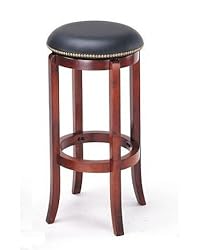 Classic York collection with pub-style comfort. Rich in style, this attractive piece provide sturdy comfort and create the traditional relaxing atmosphere of an English pub. The York Nailhead Swivel Stool has hardwood legs and black leather seat accented with nail head trim. Solid hardwood frame in cherry finish Black leather upholstered seat that meets the flammability requirements of California Bureau of home furnishings 360 degree top swivel with nailhead Dimension: Approx. 30" H, 16" Diameter Simple assembly required
