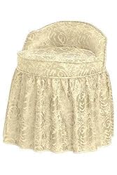 This elegant vanity stool from our Delmar Collection is a fashionable and comfortable addition to any bedroom furniture arrangement. Place it in front of your bedroom vanity for a great place to prepare in the morning. Order today.Blends easily in most decors.Sturdy wood frame adds support and durability.Resilient padding will last for years in your home.Features solid hardwood legs. Actual size is LWBK/IVRY DMSK