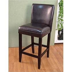 This beautifully made barstool is an attractive addition for any room. The rich fauby leather finish adds to the style of this unit. The 4 fruitwood stained solid wood legs are connected at the base of the stool and with a wood frame at the base for insured durability. The gently tapered legs are an added plus to this beautiful chair. Constructed with a wood frame and fauby leather finish. Clean with a dry non abrasive cloth. Light assembly required.
