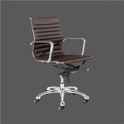 The Lider office chair combines smooth, modern lines with a full range of features. The seat and back are covered in sleek espresso leatherette. The frame is brilliant chrome plated steel. This ultra-functional chair offers a rolling, swivel base and adjustable height. The Lider chair also features locking tilt, or unlock to recline and relax. This office chair represents the best of functional, modern design. Adjusts from 18" to 20 1/2" seat height. 23" wide. Adjusts from 36" to 38 1/2" high. 25" diameter base.