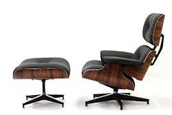 The black lounge chair and ottoman are considered among the most significant and collectible furniture designs of the 20th century. The old-fashioned luxury translated into modern forms, setting an enduring standard for comfort and elegance. Environmentally sound. The wood is harvested exclusively from sustainably managed forests. Classic comfort luxurious feel. The chair has 6-inch-thick urethane foam cushions and rich leather upholstery. A place to relax. The contours of the seat and high back welcome the sitter, and a swivel mechanism is built in. Quality and Craftsmanship Attention to detail. All pieces are hand assembled. Durable construction. Practical features. Cushions are individually upholstered and replaceable; back cushions are interchangeable; shock mounts are resilient natural rubber. In efforts to create comfortable and handsome lounge seating by using production techniques that combine technology and handcraftsmanship. Every lounge chair and ottoman manufactured has received the same meticulous handcrafted attention. Lounge: Width: 28"Depth: 33"Height: 35"Seat Height: 17" Ottoman: Width: 26"Depth: 22"Height: 18"