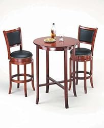 Click Here to see more reviews about: York Cherry Pub Table Set With 2 Leather Like Chairback