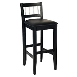 5123-89Pub stoolsalso available incottage oak Add a touch of class to your kitchen or home bar with the Manhattan Pub Stool! This stunning pub stool come in a beautiful black finish with cushioned black vinyl seat for the ultimate comfort! A solid wood construction and stainless steel rungs on the stool backs, this pub stool will surely stand strong against the wear and tear of family and friends. Would look great in a home bar or a kitchen. Save on the pub table when you purchase the set! Features: - Black with stainless steel finish trim. - Solid wood construction with cushioned black vinyl seats. - Easy to assemble. - Dimensions: 40.25'' H X 20'' W X 17'' D. - Seat height: 30''.