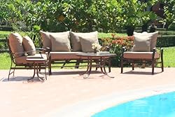 A Ewins exclusive, the Hampton Outdoor Premium Deep Seating Rocking Patio Set is skillfully crafted for utmost elegance and durability. Each piece is superbly finished with a Bronze Powder Coated finish that maintains its appearance for years to come. This set comes with 2 Stationary Rockers and a hard to find individual Rocking Loveseat. The Tempered glass coffee table and matching side table are great for entertaining. 2 Outdoor throw Pillows complete this exclusive outdoor patio set.