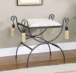Click Here to see more reviews about: Upholstered Vanity Bench with Tasseled Corners in Black and Pewter Finish